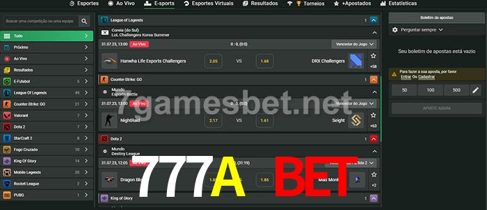 O 777A Bet oferece uma grande seleção de opções de apostas em e-sports com probabilidades competitivas